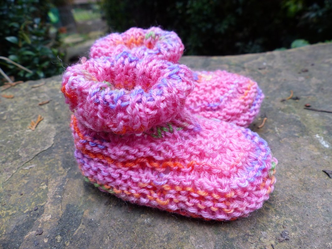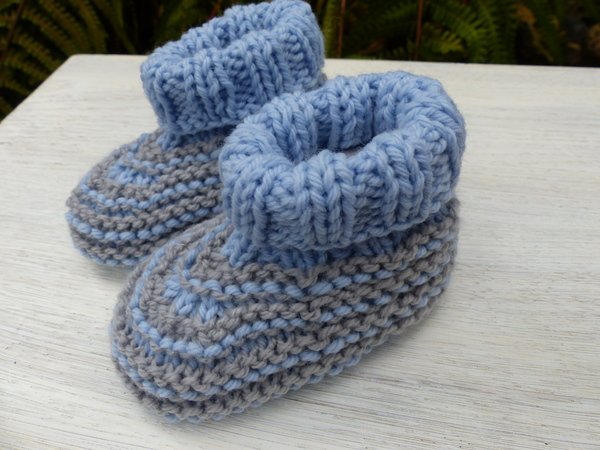 Diese kleinen Babyschuhe sind leicht und schnell zu stricken.