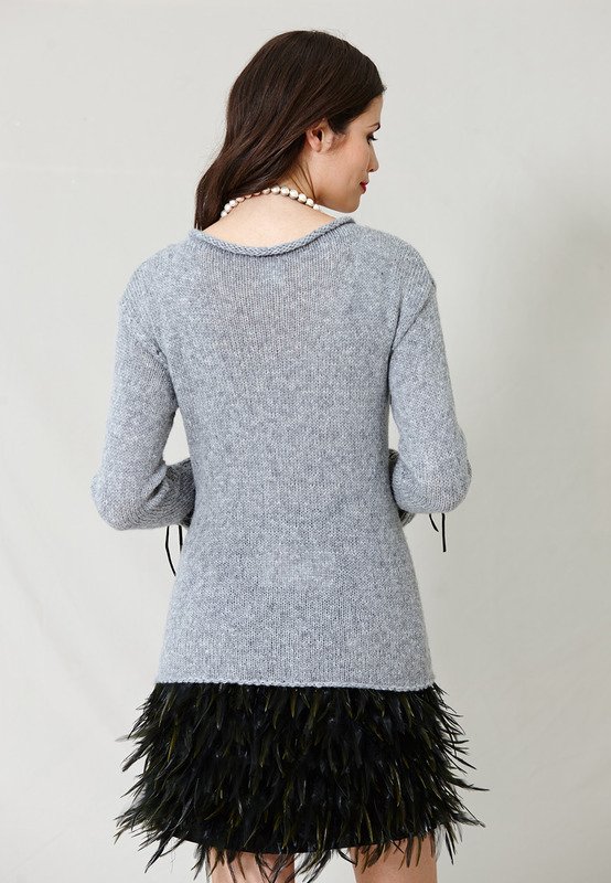 Die Balance zwischen casual und verführerisch beherrscht dieser feminine Pulli aufs Beste. Dafür sorgen zum einen ins Auge fallende Schnürungen und eine weiche Rollkante am Halsausschnitt.