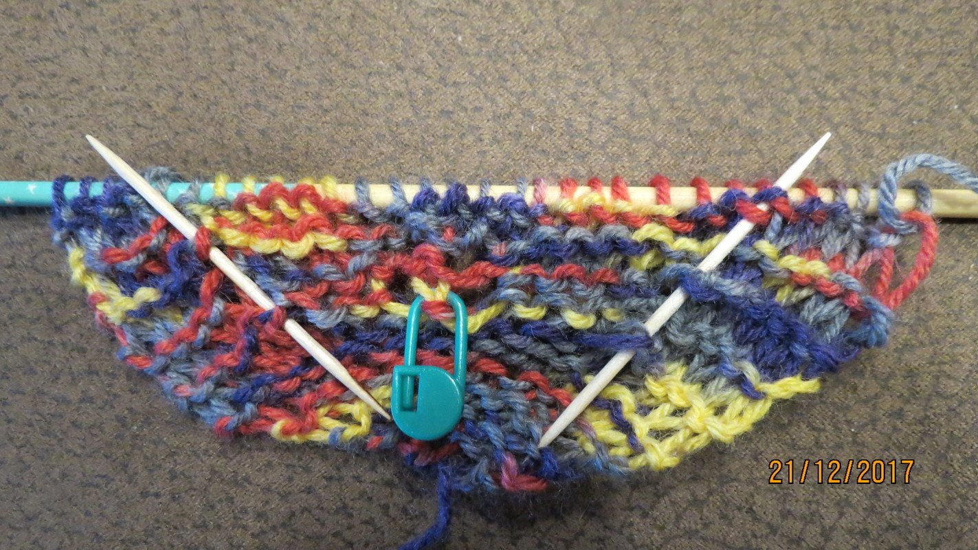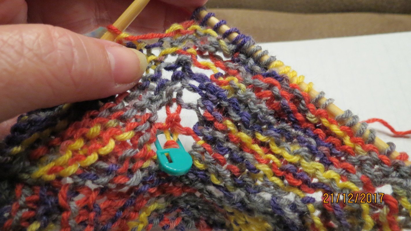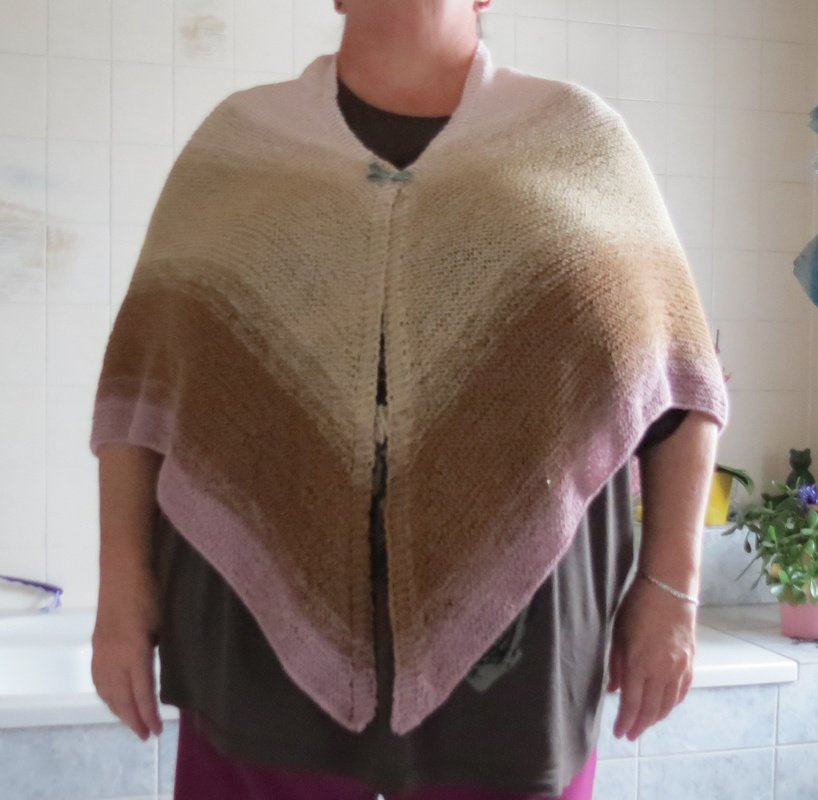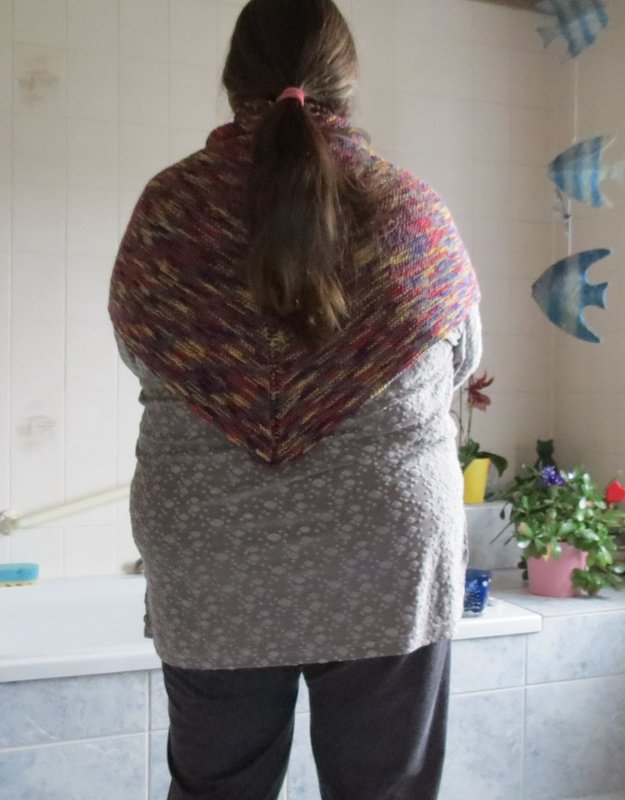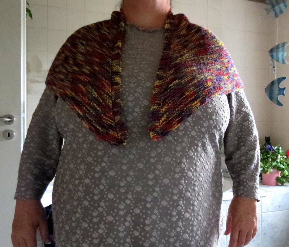 Es besteht nur aus rechten Maschen und Umschlägen und ist schnell gemacht. Du beginnst im Nacken mit wenigen Maschen.