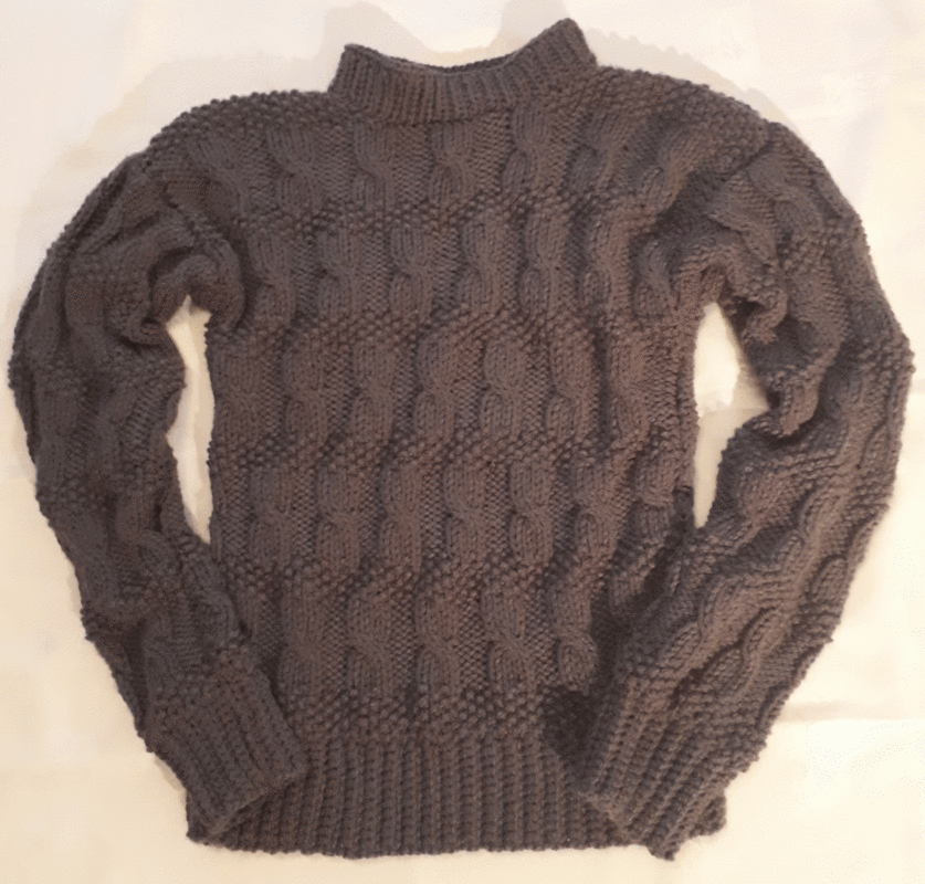 Ein kuschelig warmer Winterpullover für Herren, mit gehäkeltem Bündchen im Zopfmuster.