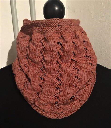 Der bräunliche Cowl ist mit Sofia gestrickt.