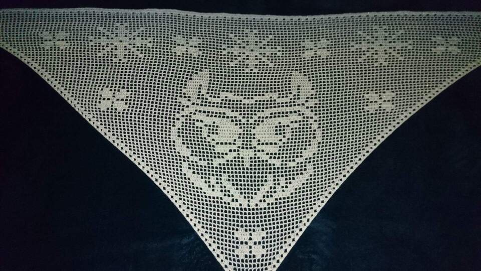 Bei einem 3 fädigen Bobbel und einer Nadelstärke von 3.0 benötigt man je nachdem wie fest oder locker man häkelt ca. 900 m Lauflänge. Das Tuch hat dann ca die Maße 200x85 cm.