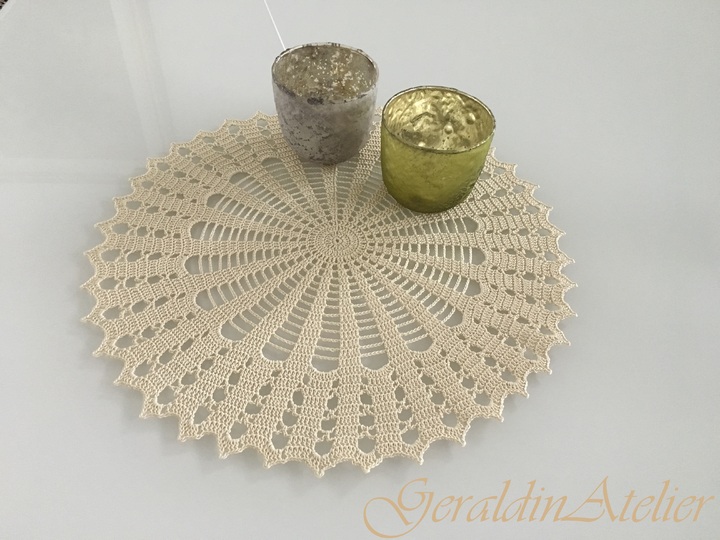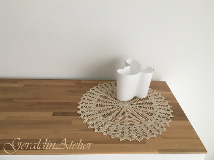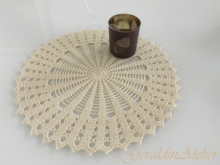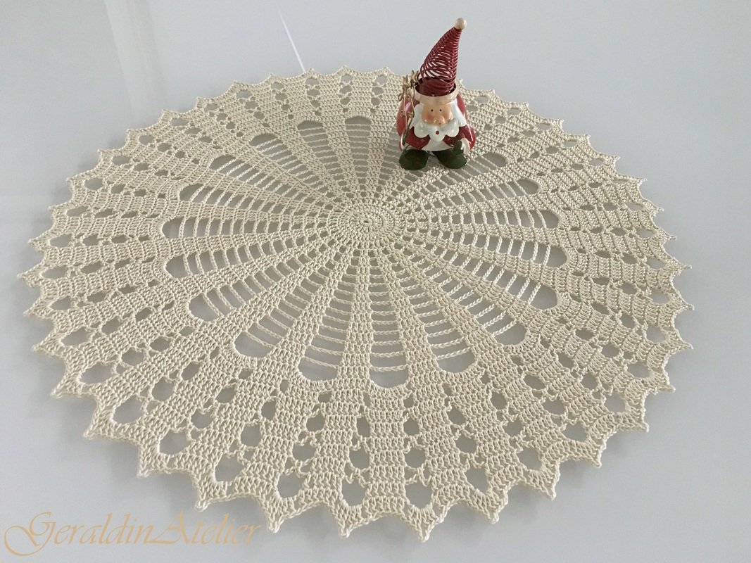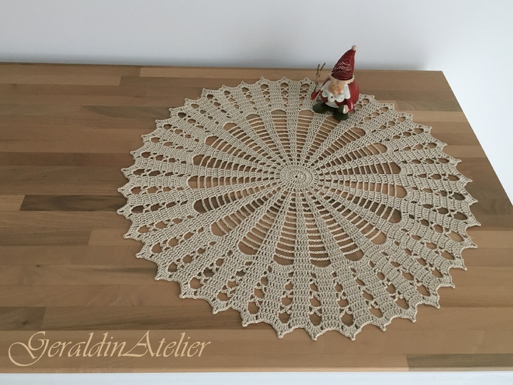 Tischdecke " Tea Time " mit einem Durchmesser von ca. 35 cm in einer edlen ecru Farbe. Diese Tischdecke ist ein Schmuckstück für den Nachmittagsteetisch. Sie bringt eine gemütliche Atmosphäre und passt zu jeder Wohneinrichtung.