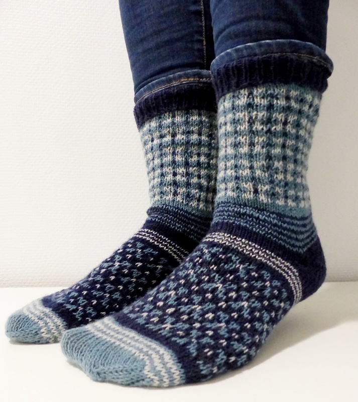 Diese 3farbigen Socken mit dem tollen Muster kannst du dir mit dieser Anleitung selber stricken.