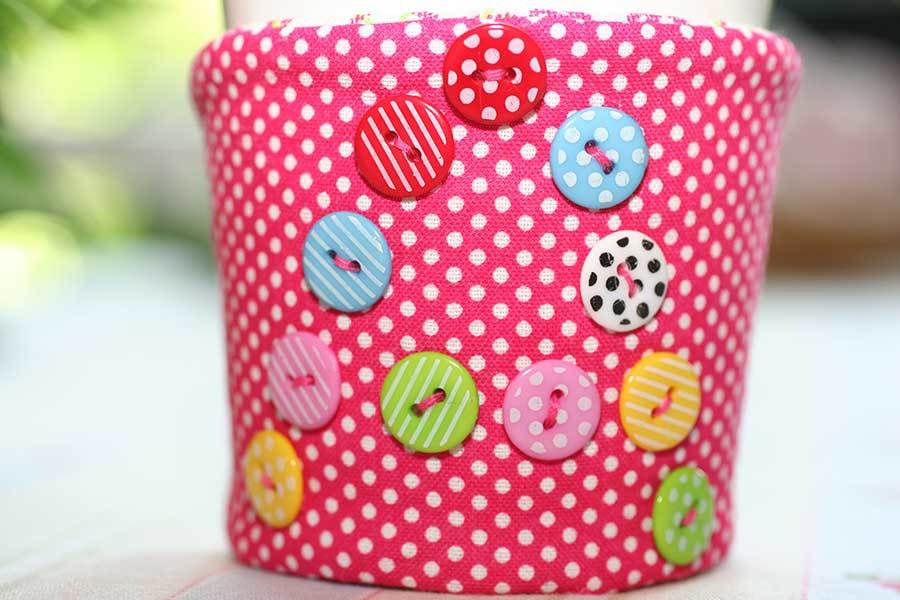 Du brauchst nur ganz wenig Material, auch mit Stoffresten kannst du diesen Tassenwärmer selber nähen.