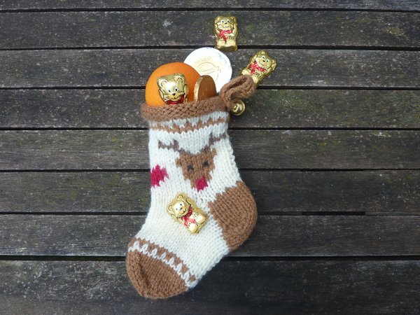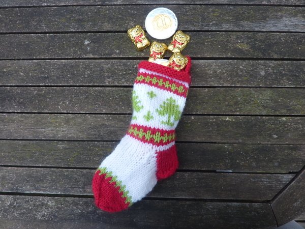 Mit einer Größe von etwa 8 x 20 cm sind die Strümpfchen ausreichend für so manche Überraschung. Ihr könnt sie natürlich auch größer stricken, ganz nach Euren eigenen Vorstellungen.