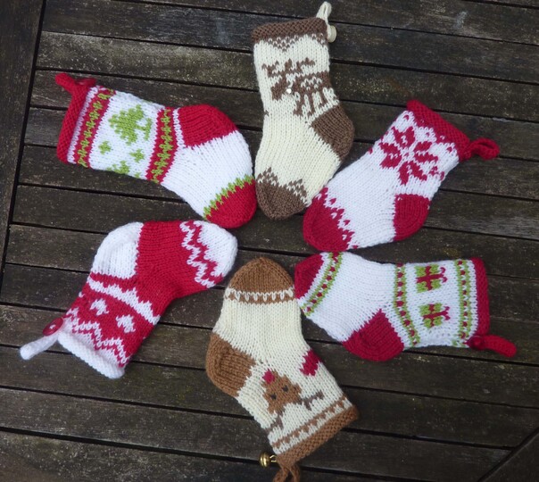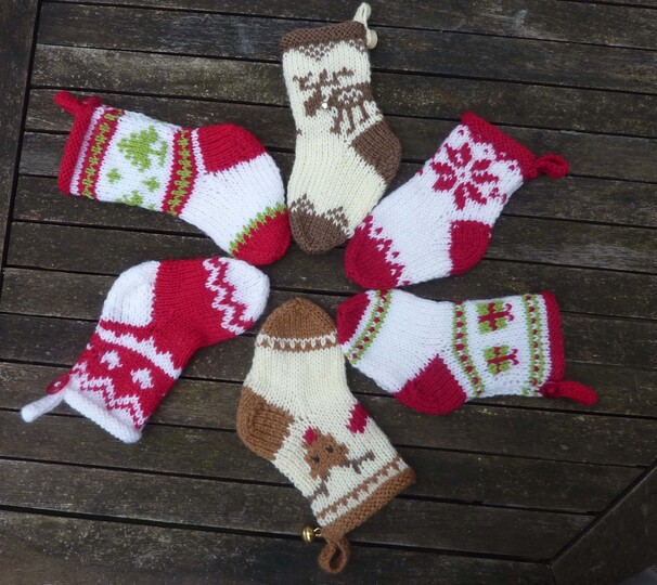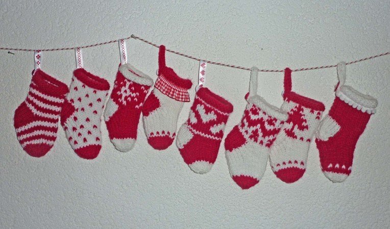 Hier ist sie. Denn die niedlichen Söckchen mit den skandinavischen Einstrickmotiven sind so einfach und schnell gestrickt dass sich bis Weihnachten sogar noch ein ganzer Adventkalender daraus herstellen lässt. Für jedes Söckchen braucht man gerade mal 2 Stunden. Die Söckchen werden durch eine spezielle Technik auf nur 2 Nadeln gestrickt und sind somit auch für ungeübte Strickerinnen leicht zu bewältigen. Natürlich können auch wenige Söckchen gestrickt und jeden Tag neu befüllt werden ;-)