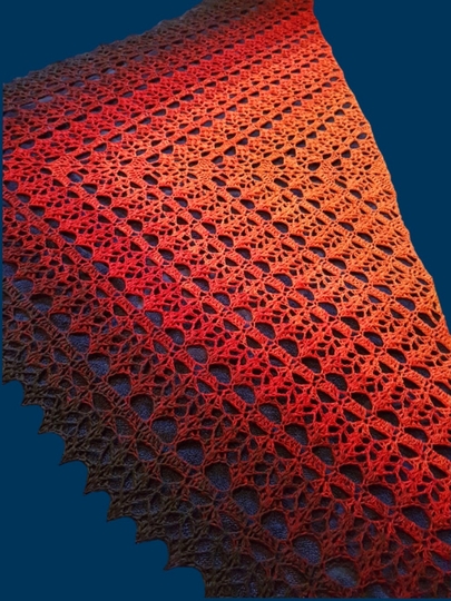Für mein Tuch hab ich eine 4er Nadel verwendet und 1000m/250gr "Sommernacht in Rom" von Wolltraum. Das Tuch wurde 200cm lang.
