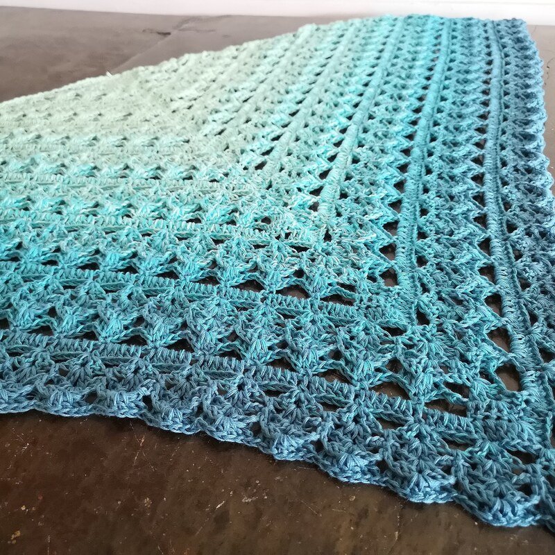 Das Tuch hat ein sehr zartes Muster und kann daher auch als Lace Tuch gearbeitet werden.