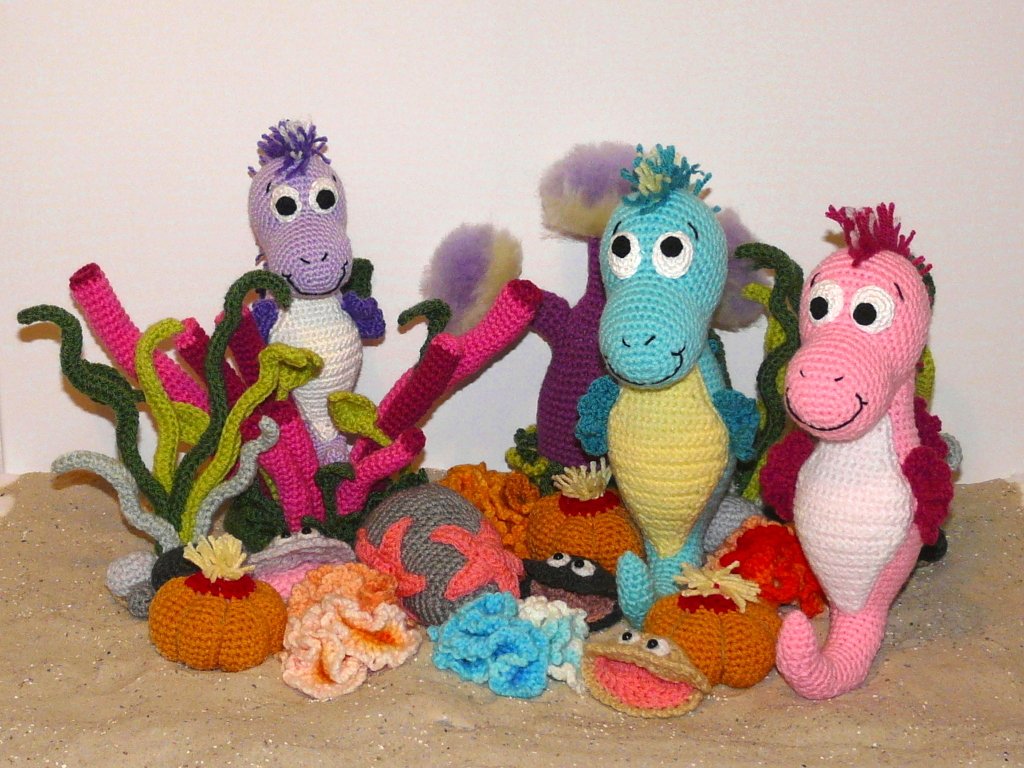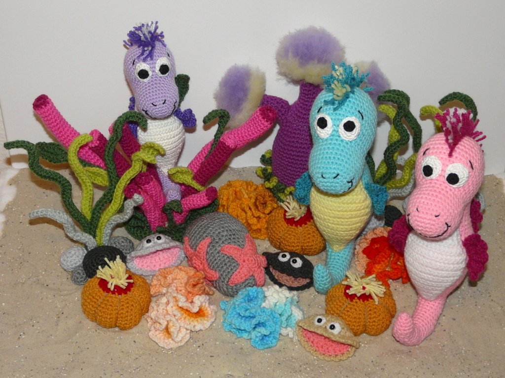 Ich liebe Seepferdchen und ich liebe die kräftigen und schillernden Farben von Korallen. Mit dieser Anleitung könnt ihr euch euer eigenes Aquarium mit bunten Korallen, lustigen Muscheln und süßen Seepferdchen häkeln.