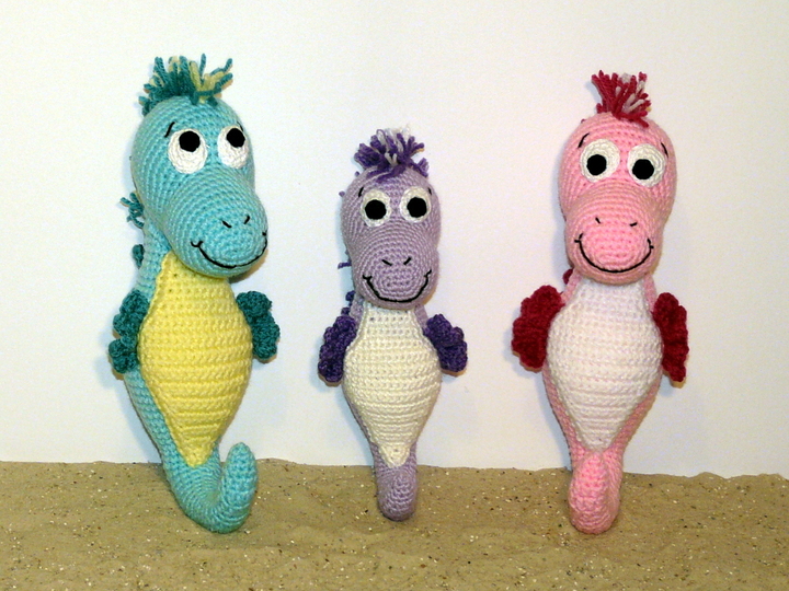 Je nach Garn- und Häkelnadelstärke variiert die Größe von den Seepferdchen.
