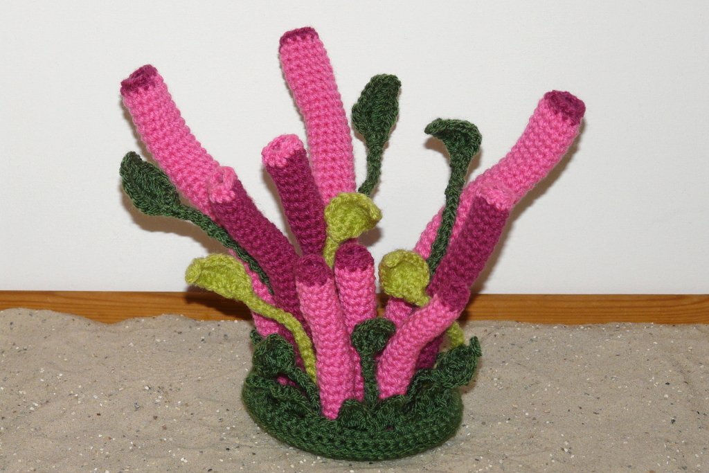 Die kräftigen und schillernden Farben von Korallen sind doch einfach prächtig. Mit dieser Anleitung könnt ihr euch eure eigene Korallen Landschaft mit lustigen Muscheln häkeln.