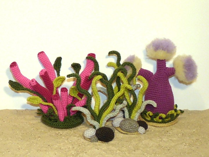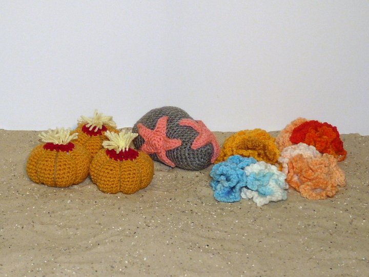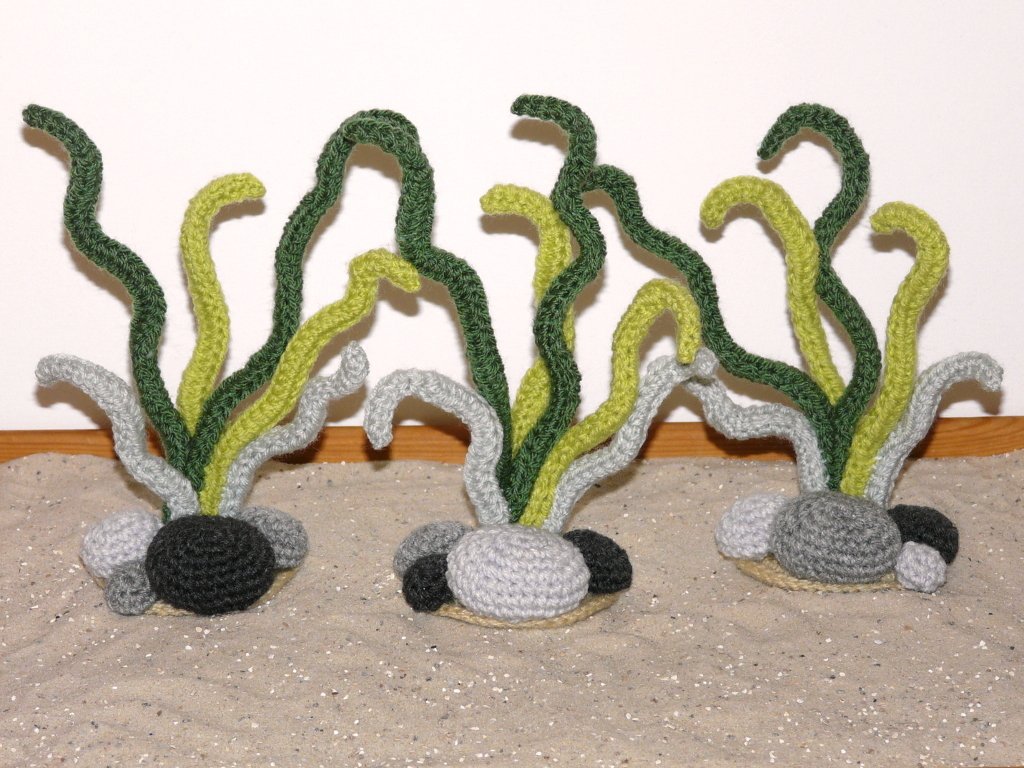 Je nach Garn- und Häkelnadelstärke variiert die Größe von den Muscheln und den Korallen.