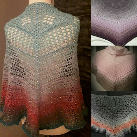 Das Tuch Little Romance kommt besonders gut mit Farbverlaufsgarn zur Geltung.