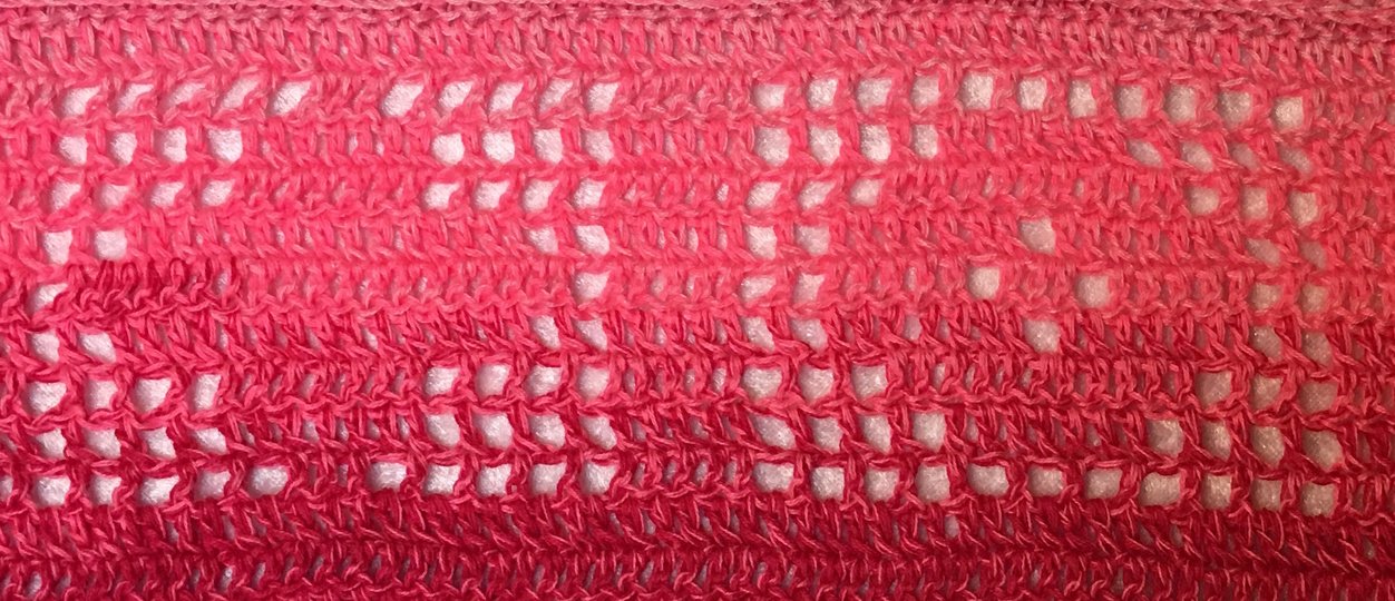 In diesem Beispiel habe ich einen 1250 m 4-fädiges Farbverlaufsgarn "Pink Unicorn" aus der Bobbel-Scheune mit einer 3,5 Häkelnadel verarbeitet.