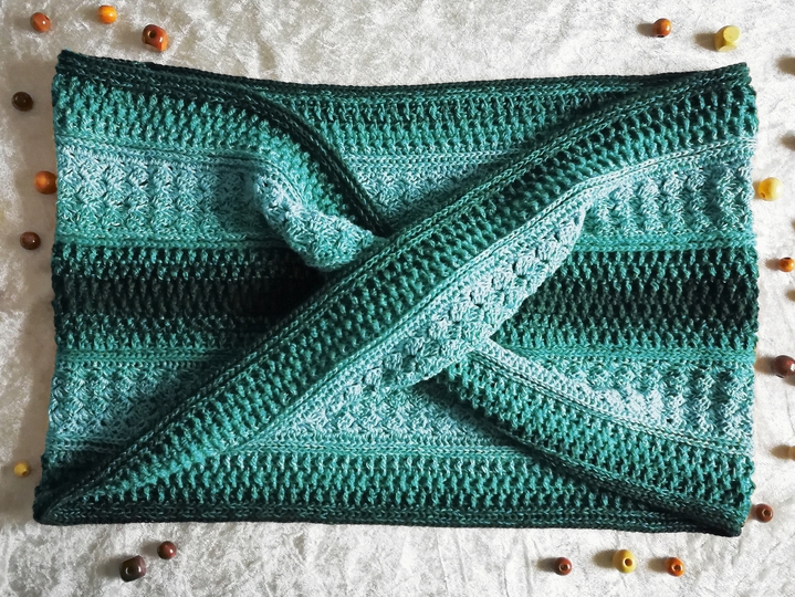 Den Loop häkeln wir in der Möbius-Technik. Das Muster ist von beiden Seiten absolut gleich und man erkennt keinen Anfang und kein Ende.