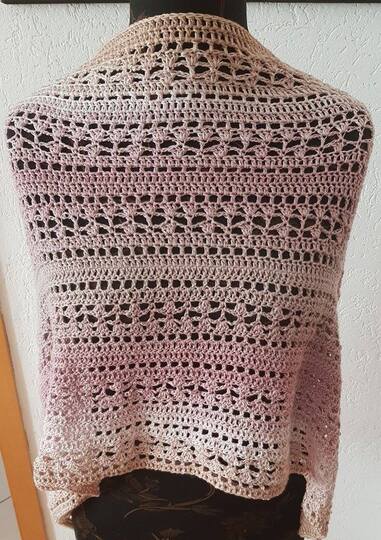 Gearbeitet wurde dieser Möbius mit einer 4,0er Häkelnadel. Verarbeitet habe ich 4 fädiges Farbverlaufsgarn Verbraucht habe ich ca. 1000 LL.