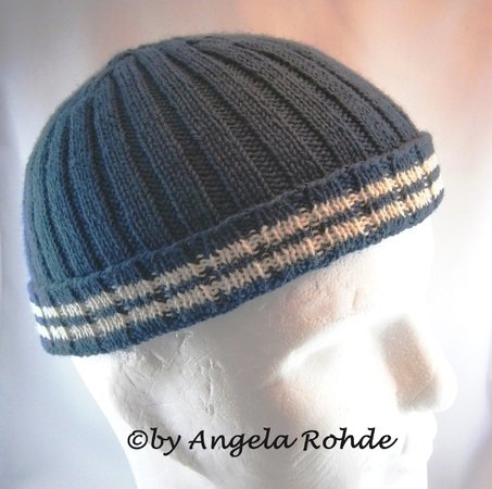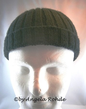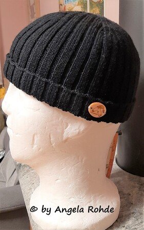 *Inspiriert von einer Fernseherie habe ich diese Mütze entworfen. Ausserdem habe ich diese Mütze auf besonderen Wunsch einiger männlicher Kunden schon mehrfach gestrickt. Sie passt bis zu einem Kopfumfang bis 60cm - ist also auch für "Dickköppe" geeignet. Durch eine besondere Ausarbeitung liegen die Rippen hier genau aufeinander, wenn die Mütze umgekrempelt wird. Ein besondere Hingucker ist die Abnahme. Dadurch steht die Mütze oben nicht ab, sondern schmiegt sich schön an den Kopf an.