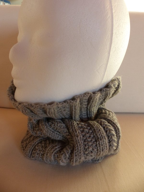 Sowohl elegant mit feinem Garn als doppelter Loop getragen, oder aber Rustikal als Kragen mit einem Wollgarn gestrickt, sieht dieser Loop toll aus.