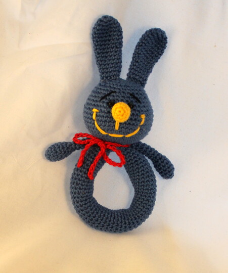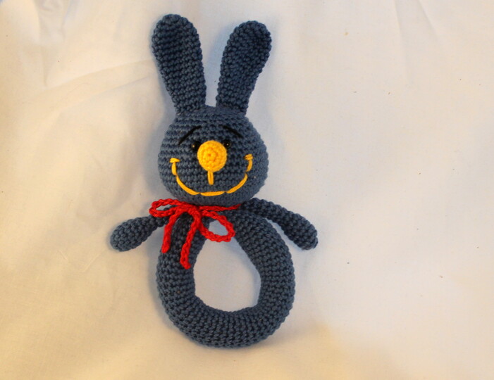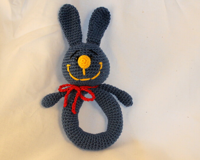 Die Hasenrassel hat eine kleine Rasselkugel eingebaut, und sowohl der Rind, als auch die Arme und die Ohren sind super geeignet für Babies kleine Händchen.