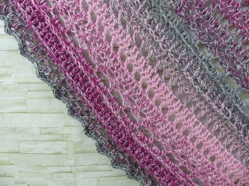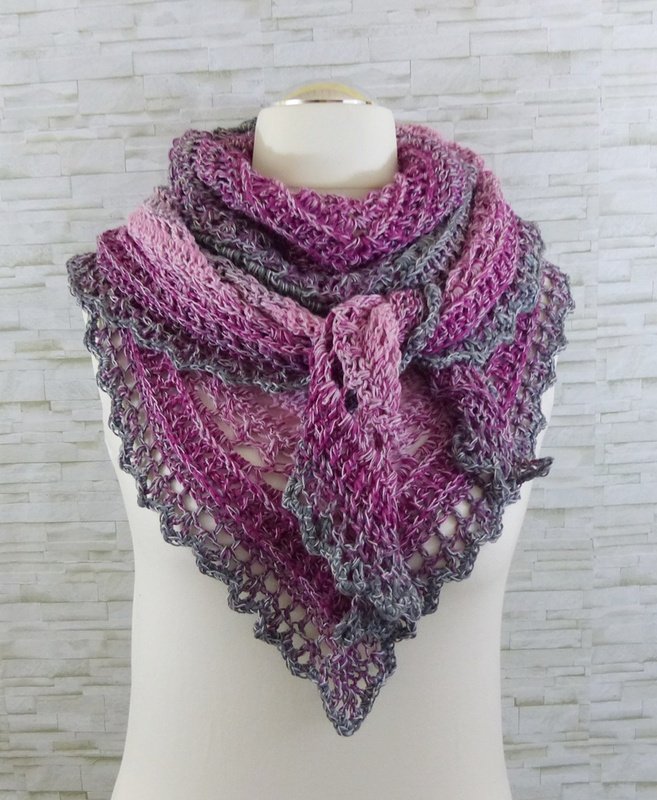 Das Häkeltuch kann mit ganz unterschiedlicher Wolle gehäkelt werden. Bei Verwendung von Lacegarn wird das Dreieckstuch filigran und somit leicht & locker. Baumwolle / Mikrofaser können ideal für ein Sommertuch verwendet werden. Für den Herbst/Winter empfiehlt sich auch Sockenwolle / dünner Merino-Schurwolle.