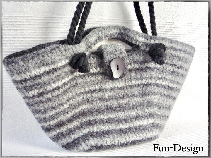 Diese vielseitige Filztasche wird zuerst gehäkelt und dann in der Waschmaschine gefilzt.