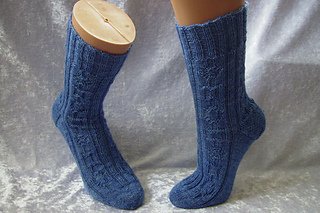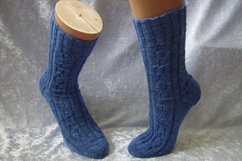 Ein einfach nachzustrickendes Sockenmuster, das sich schnell merken läßt. Das besonders gut auf einfarbigen Garnen wirkt. Sehr gut geeignet für Anfänger oder Herrensocken.