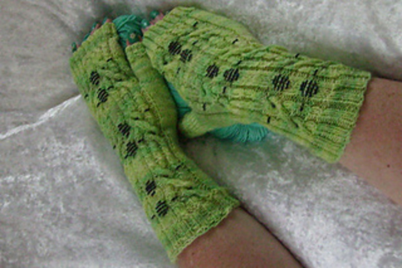Ein Paar Handstulpen die sehr viel Freude beim stricken machen, und noch dazu sehr edel wirken. Die Anleitung besteht aus einem langen Musterchart, indem sogar die Zunahmen für die Daumen mit angegeben werden. Unter diesem Chart finden sie jeweils eine geschriebene Anleitung für jeden Daumen extra. Die Perlen stricken sie bitte so ein, wie sie es gewohnt sind, oder sie werden einfach weggelassen.