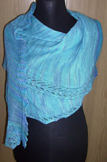 Ein Tuch das in Reihen gestrickt wird. Es besteht aus vier Teilen, die unterschiedlich oft wiederholt werden. Durch weglassen oder hinzufügen von Wiederholungen können sie das Tuch Ihrer Garnmenge anpassen. Das Tuch wird von einer Seite zur anderen gestrickt, und gewinnt durch Zu - und Abnahmen an Tiefe. Mein Tuch ist nach dem straffen spannen 2,50 m lang und 70 cm breit.