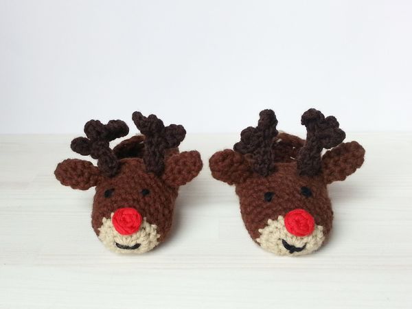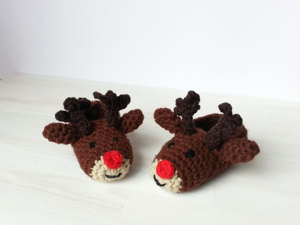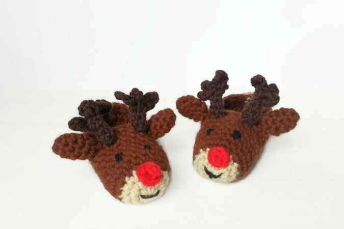 Wie wäre es mit süßen Kinderhausschuhen, die wie Rudolf aussehen?