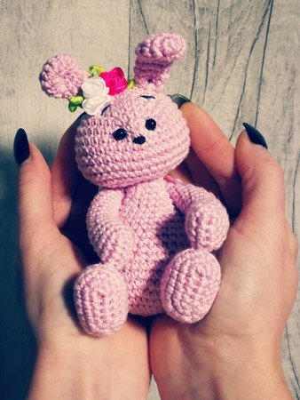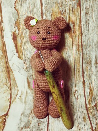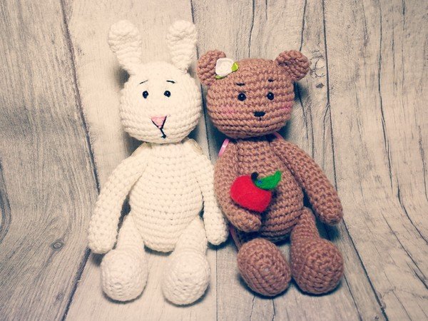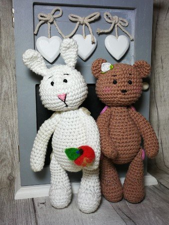 Wolle: du kannst beliebiges Garn verwenden, ideal sollte es aber ein Baumwollgarn sein. Ich habe die Lieblingsfarben von myboshi verwendet: die Farbe weiß für das Häschen, die Farbe ocker für das Bärchen. (die kleineren Figuren habe ich mit einer dünneren Wollqualität gehäkelt 50g=115m) Du kannst aber beliebiges Garn aus deinen Wollvorräten nutzen, welches farbig passt, jedoch musst du bedenken, dass sich die Größe der fertigen Figur dadurch ändert. Mein Figuren aus myboshi Lieblingsfarben No. 2 sind ca. 18 cm hoch.