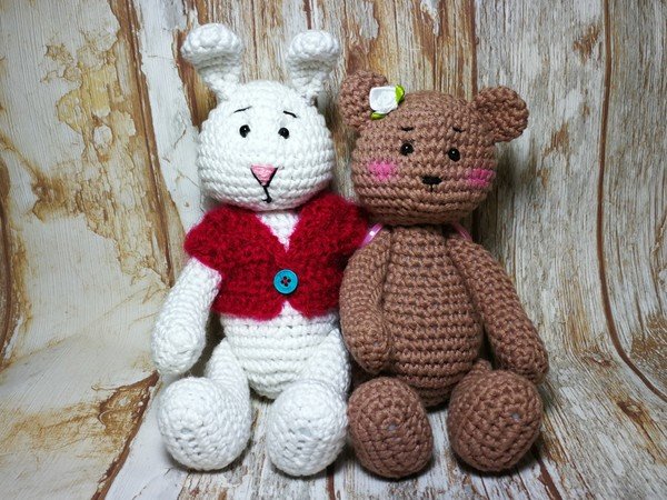 Diese zauberhaften Freunde kannst du mit Hilfe dieser Anleitung ganz schnell selbst häkeln. Die Anleitung ist sehr ausführlich auf 12 Seiten, mit sehr vielen Bildern geschrieben. Die Beinchen und Arme lassen sich durch die beschriebene Technik leicht befestigen und lassen sich somit bewegen, deine Tierchen können daher sitzen und stehen.