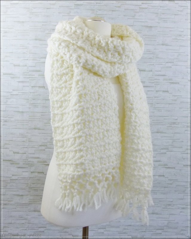"Bea" ist ein Schal der einfach und schnell gehäkelt ist. Die lustigen Fransen sehen toll aus und peppen den Schal auf.