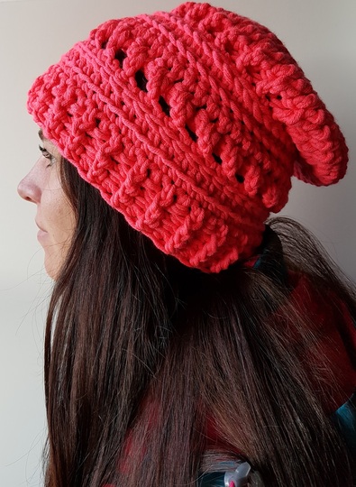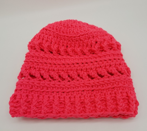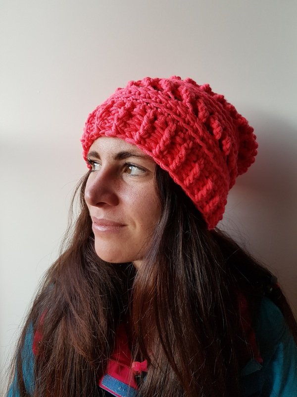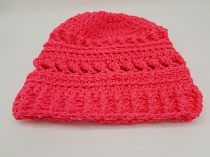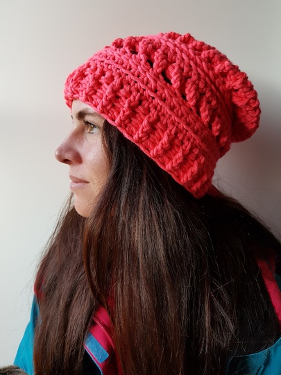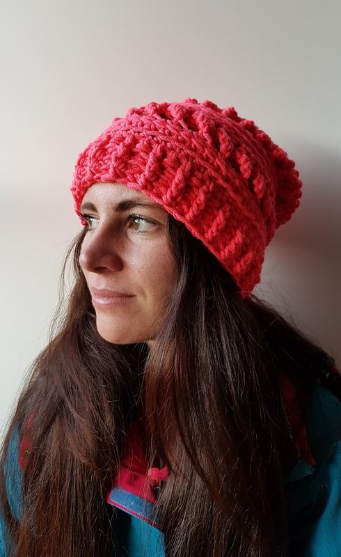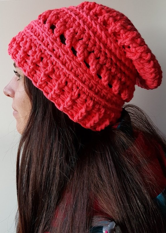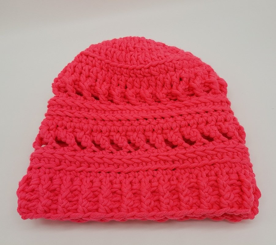 Die Mütze ist schnell gehäkelt und kann mit Hilfe der Größentabelle, welche in der Anleitung enthalten ist, individuell angepasst werden.