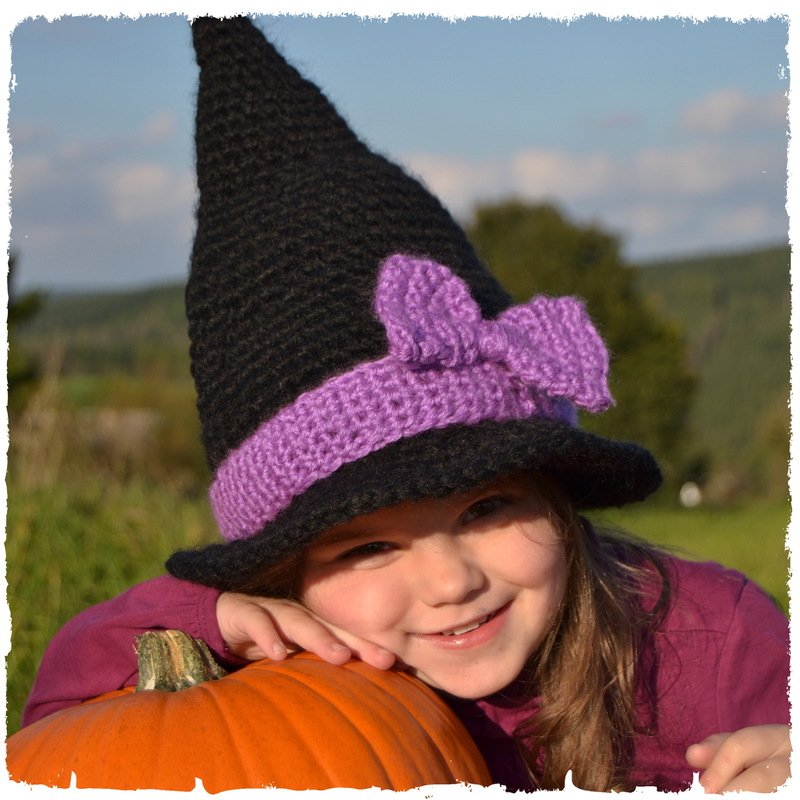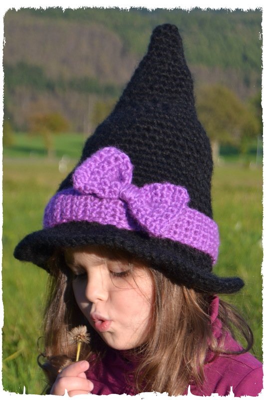 Süßer Hexenhut für Halloween und Fasching, als Ergänzung zum Kostüm oder als Deko. Auch ohne Band und Schleife als Zaubererhut für Harry P. Kostüm.