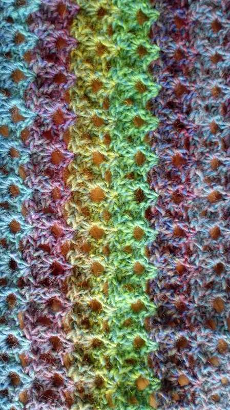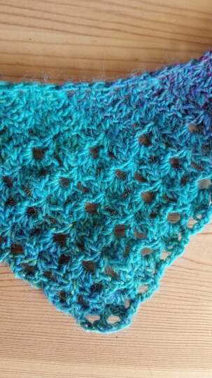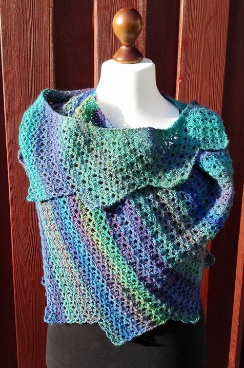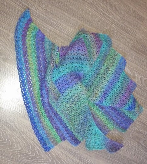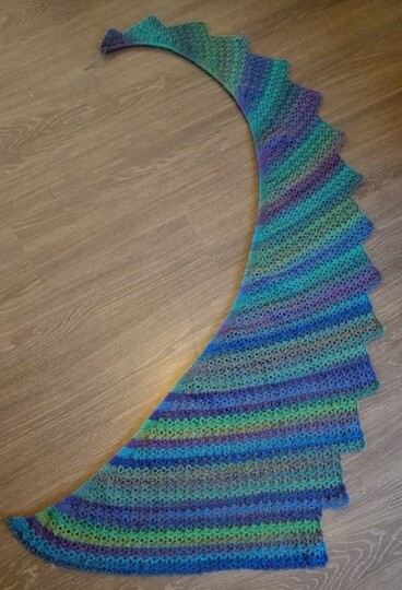 Ein Zackenschal aus zwei Knäul Farbverlaufsgarn gehäkelt.
