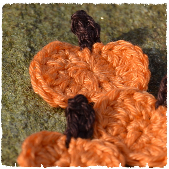 Diese kleinen Kürbisse lassen sich super schnell häkeln und verschönern als Streudeko den Tisch, Geschenke und können auch auf Kleidung appliziert werden.