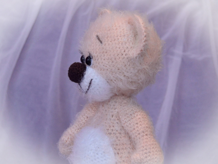 Bei dem puderfarbenen habe ich künstliche Wimpern aus dem Drogeriemarkt aufgeklebt, so wird dein Teddy weiblich :-)