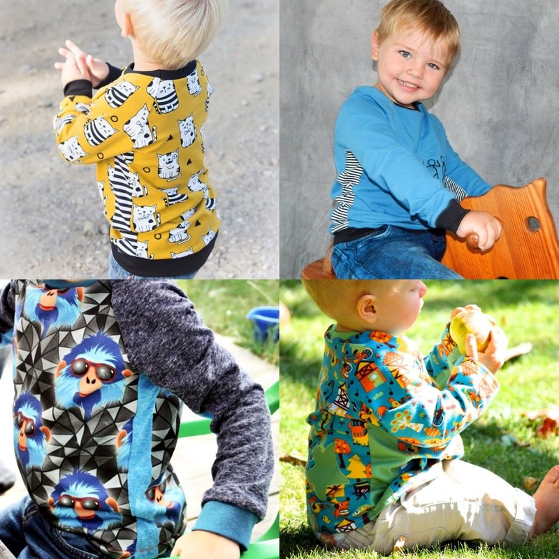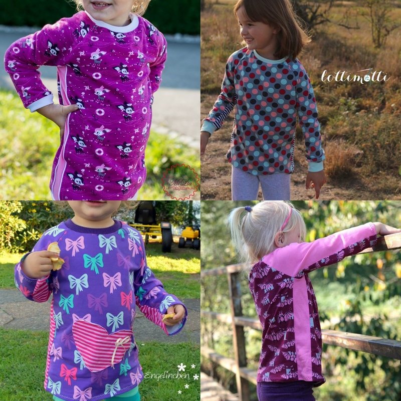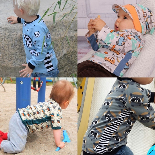 Mit diesem Ebook (Bebilderte Anleitung und Schnittmuster) kannst du dir, bzw. (d)einem Kind ein Langarmshirt mit Raglanärmeln und Seitenstreifen nähen. Durch das Verwenden von mindestens 2 verschiedenen Stoffen, sind die Gestaltungsmöglichkeiten sehr groß. Das Shirt ist leger geschnitten und kann euch aus Sweatshirtstoffen oder Interlock genäht als Pullover, oder aus Jerseystoff genäht als Langarmshirt begleiten. Du lernst in diesem Ebook zusätzlich, wie du den Grundschnitt mit V-Ausschnitt, Rollkragen, Sternen-Applikation oder aufgesetzte Taschen erweiterst, um noch individueller zu nähen. Gerade wenn du Nähanfänger bist, ist dieser Schnitt sehr gut zu schaffen.