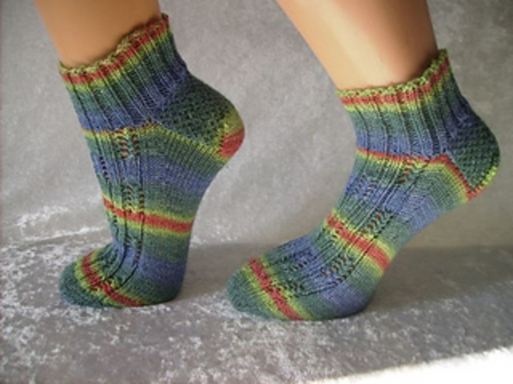 Ein kleines und einfaches Sommermuster, welches sehr eingängig ist und einfach zu stricken. Die Socken können gerne als Kurzsöckchen, Sneaker oder normale Socken gestrickt werden.