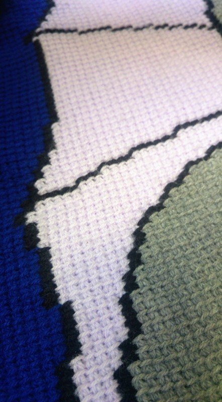Die Decke wird tunesisch gehäkelt. Es sollte bekannt sein wie man beim tunesischen Grundmuster die Farben wechselt. Sie kann auch normal gehäkelt werden, dadurch verändert sich jedoch das Motiv. Es wirkt gestaucht.