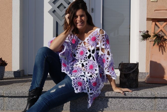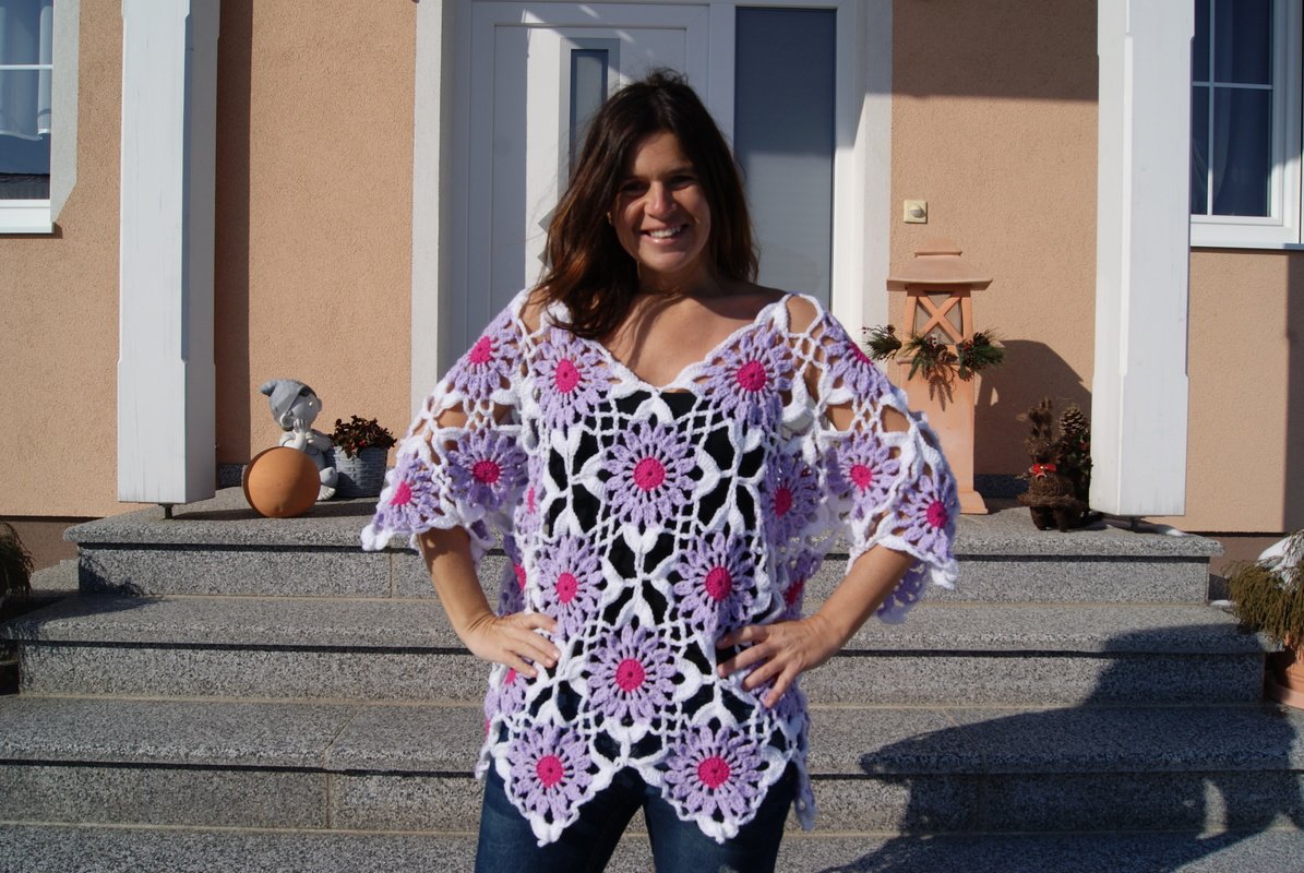 Wunderschöner Überziehpulli im Oversize-Look zum Wohlfühlen! Der lockere Schnitt und das tolle Muster machen ihn zu einem echten Hingucker. Kuschelig, lässig und elegant zugleich! Die Anleitung ist auch so geschrieben, dass der Pulli ganz einfach individuell mit ein paar Grannys mehr oder weniger noch größer oder kleiner für alle Größen angepasst werden kann!