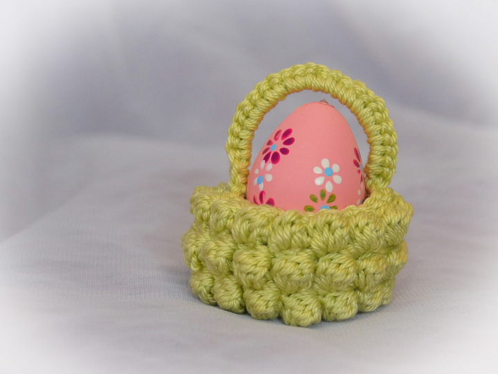 Das Osterkörbchen wurde mit Catania und Häkelnadel 2,5 mm im Noppenmuster gefertigt.