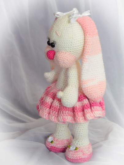 Mit der angegebenen Wolle wird Rosalie ca 30 cm hoch.
