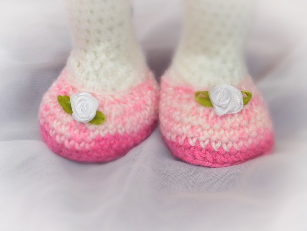 Optional kleine Röschen und Bindeband für die Schleifen und die Verzierung der Schuhe.