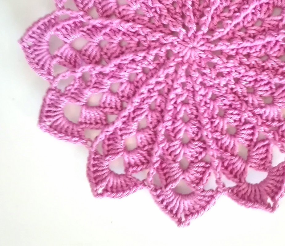 Häkelanleitung für ein wunderschönes Deckchen in 2 Größen (20 cm / 11 cm Durchmesser) gehäkelt aus festen Maschen, Stäbchen, Relief-Stäbchen und Relief-Doppelstäbchen. Am besten häkeln Sie gleich mehrere in verschiedenen Farben! Viel Spaß beim Nacharbeiten ....