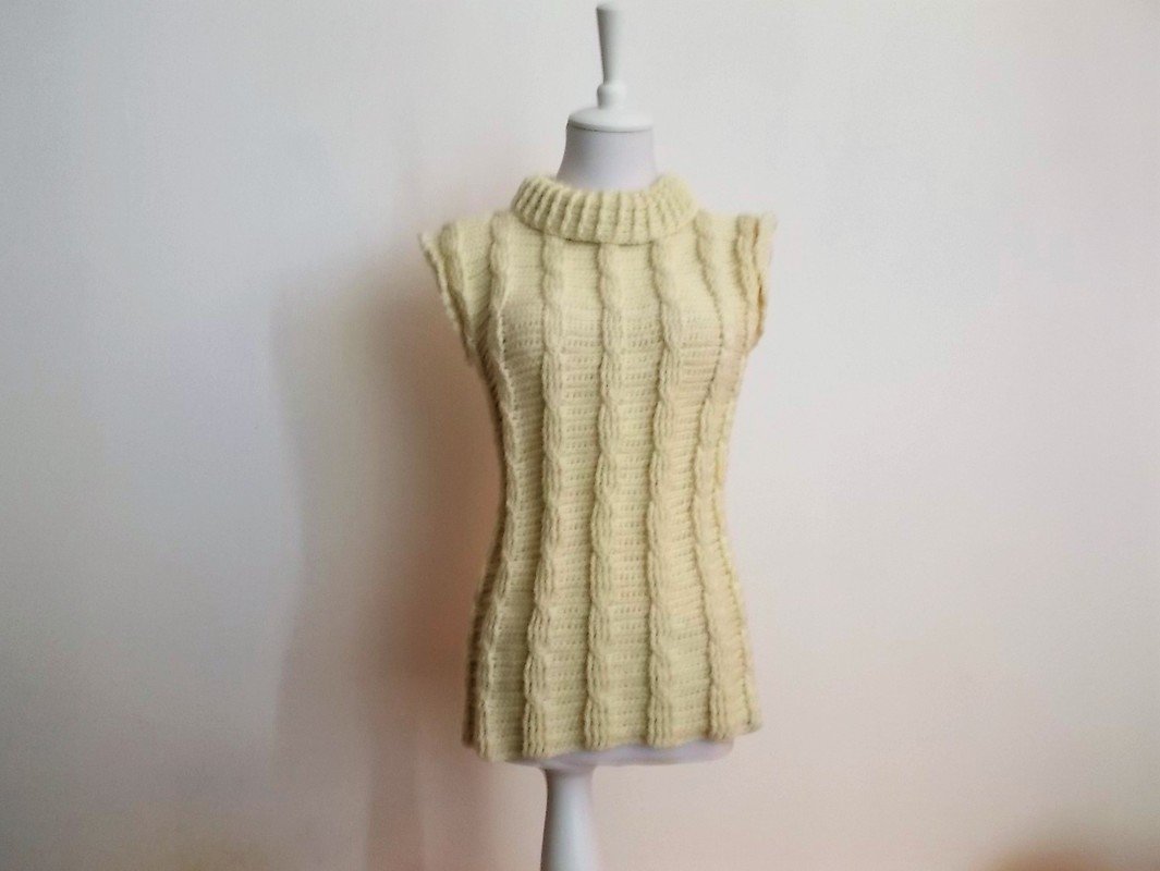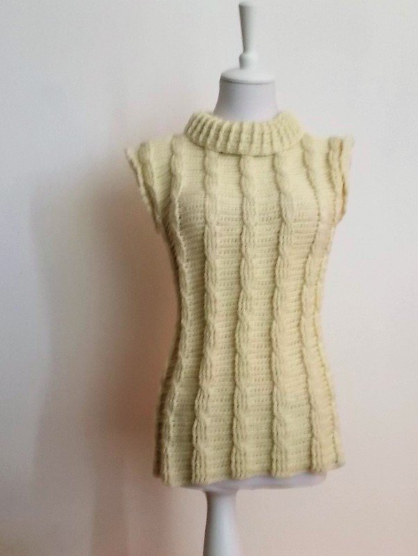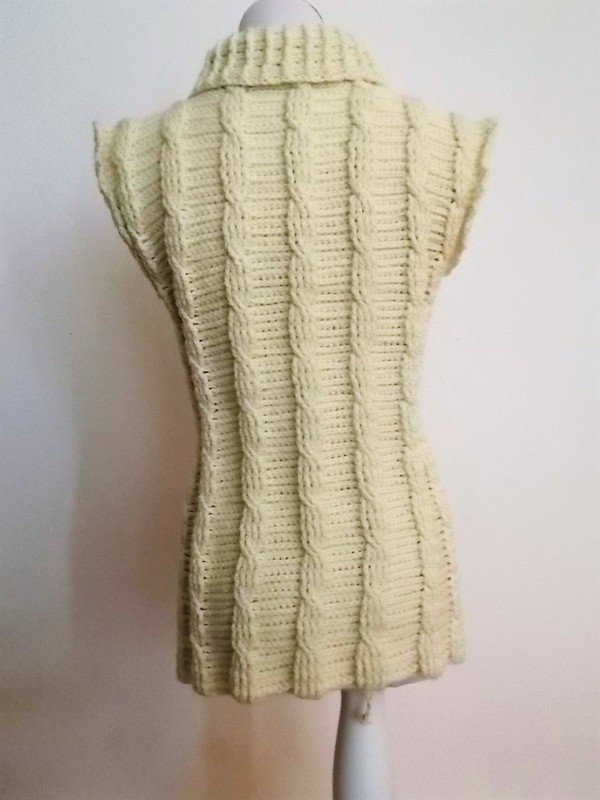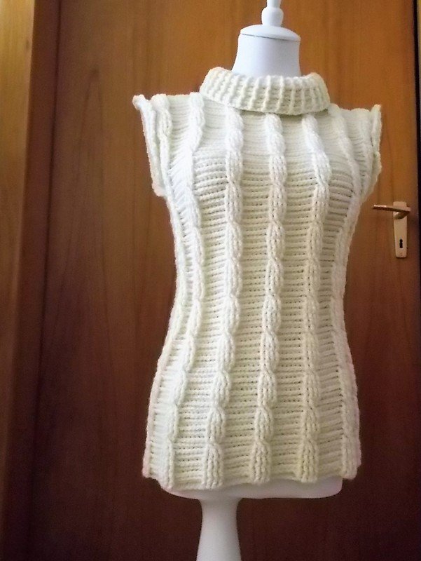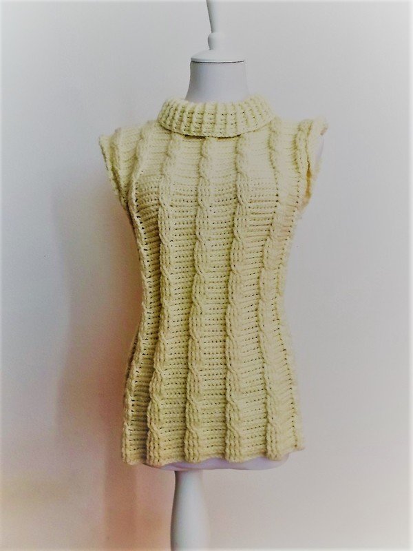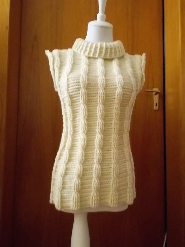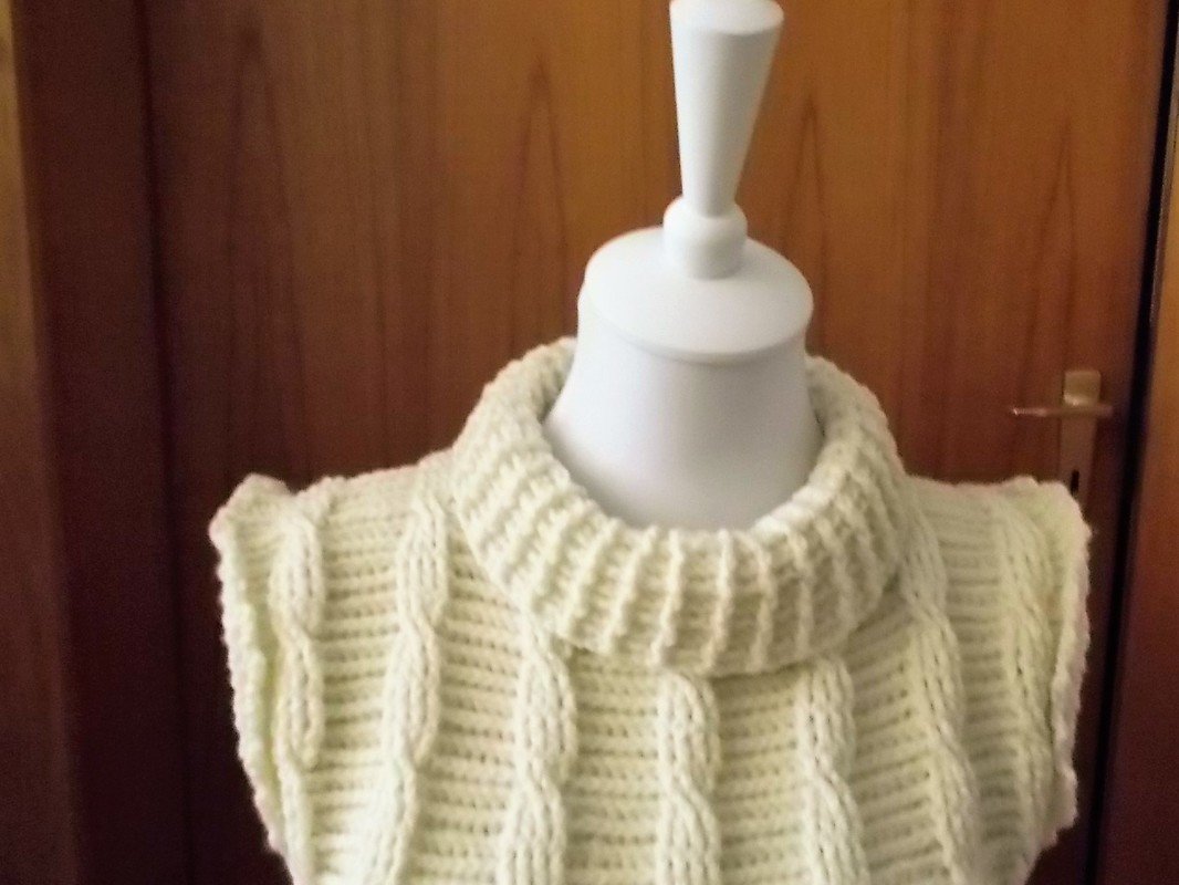 Häkelanleitung für einen Pullunder mit Zopfmuster und Reliefmaschen.