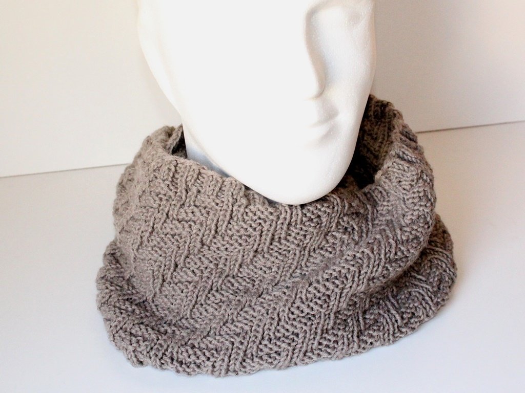 Passend zur Mütze hier die Anleitung für einen Loop mit Strukturmuster.