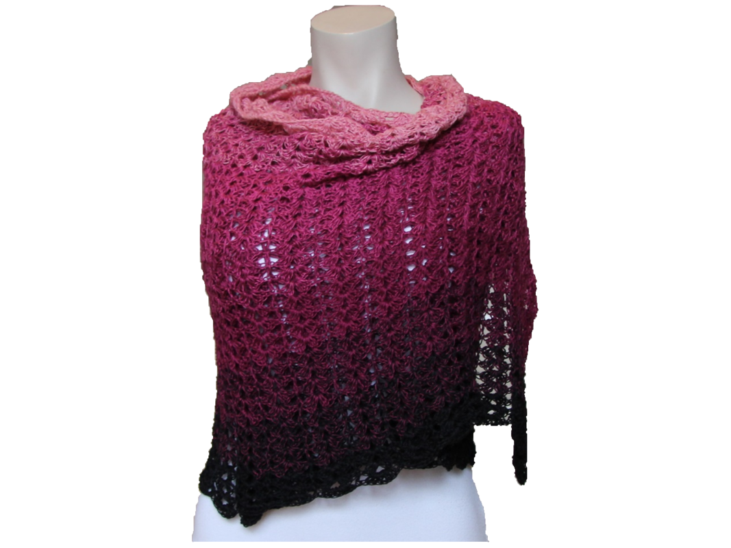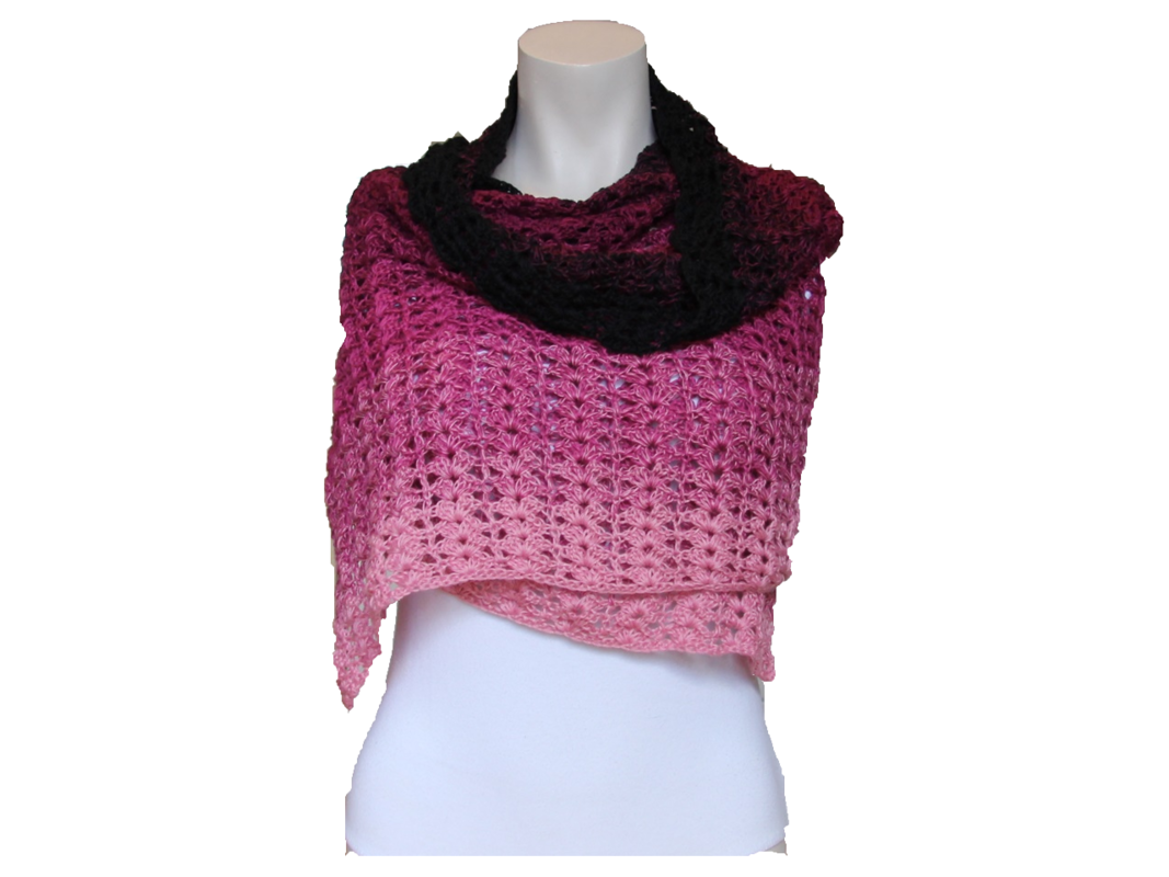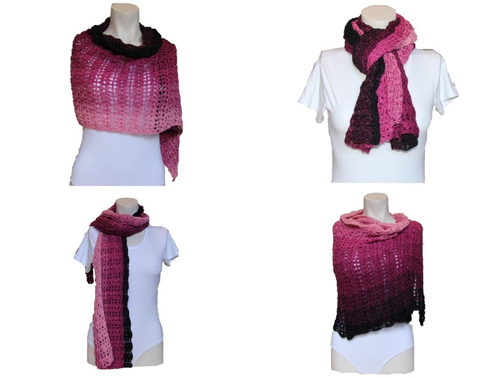 Dieses Tuch wird an einem Stück aus einem 3fädigen Farbverlaufsbobbel mit 1000m LL / 200g gehäkelt und ist Dank der Schritt-für-Schritt-Anleitung auch für Anfänger schnell und einfach zu realisieren. Im Anhang an die Schritt-für-Schritt-Anleitung finden sich eine unbebilderte Druckversion, eine (sehr ordentlich handgeschriebene) Häkelschrift und die Erläuterung, wie Sie die Stola aus jedem anderen Garn und in jeder Größe häkeln können.