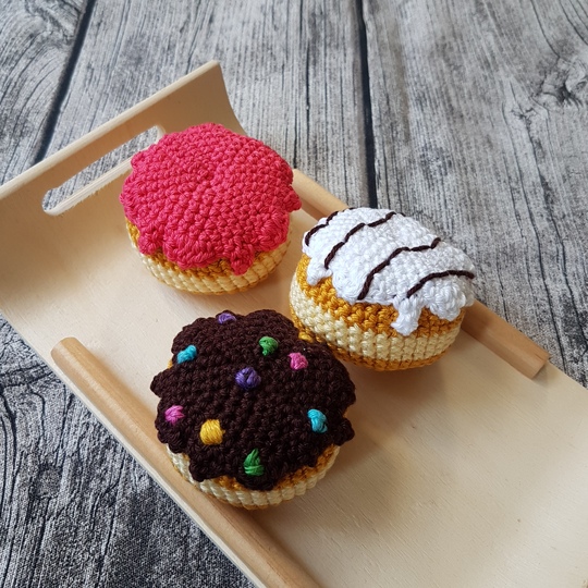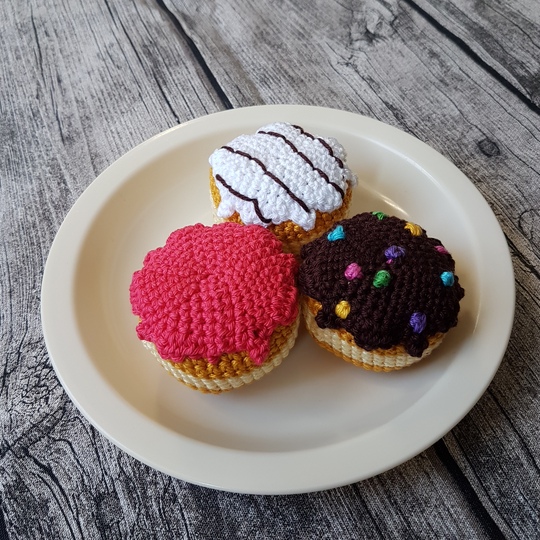 Die Häkelanleitung erklärt detailliert wie die Berliner gehäkelt und mit verschiedenem Zuckerguss verziert werden. Zu dem ist sie Schritt für Schritt bebildert und daher auch für Anfänger gut geeignet.